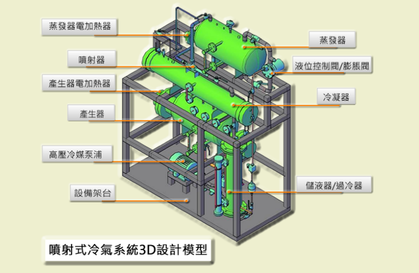 臺大新能源中心2008年獲沙國阿布杜拉國王科技大學頒發的全球研究伙伴獎(Global Research Partnership Award),專注於熱源製冷、太陽能照明及海水淡化等技術。本案與台大新能源中心專案合作,打造示範計畫之噴射式製冷專用測試機台(>3.0USRT),其以熱能為製冷動力,可用太陽能、工廠廢熱、地熱等方式產生空調冷氣。